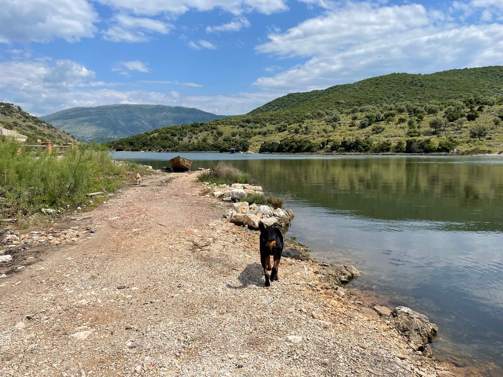 De volgende dagen trekt het weer bij naar 20-25 graden en volop zon. Pogradec centrum en de lange boulevard langs het meer worden verkend. Tijdens een stadswandeling haakt een kleine straathond aan. Dit is dus zo’n leuke ervaring. Het beestje volgt ons kilometerslang. Heeft misschien wel ergens een eigenaar want draagt een halsband. Dit zie je vaker bij zelfstandig bewegende honden. In elk geval is hij alleen nieuwsgierig en niet agressief en dan is het wel gezellig.